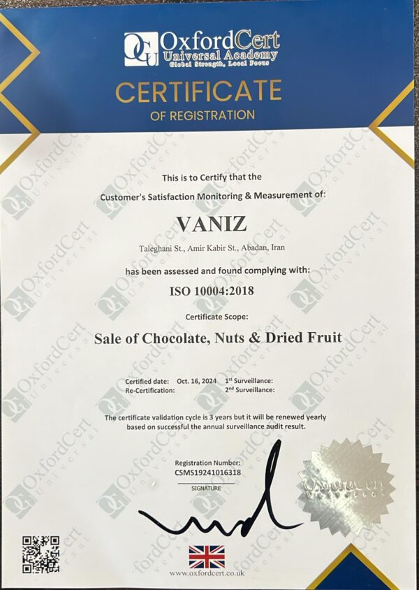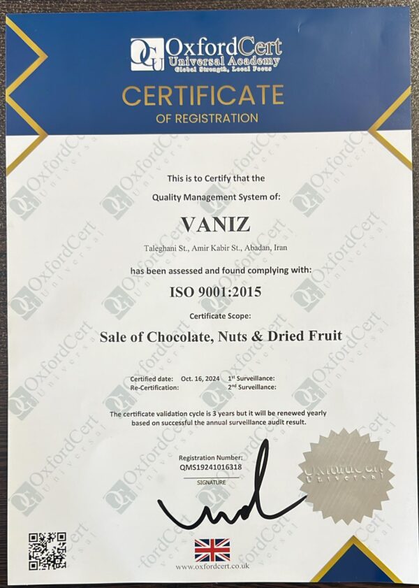 ما در ونیز، به کیفیت، سلامت و ایمنی محصولات خود پایبندیم. تمامی محصولات ما دارای گواهینامههای بینالمللی از جمله ایزو، مجوز بهرهبرداری در ایران و تأییدیه سازمان غذا و دارو هستند. این استانداردها تضمینکننده تعهد ما به ارائه محصولاتی سالم و باکیفیت است.